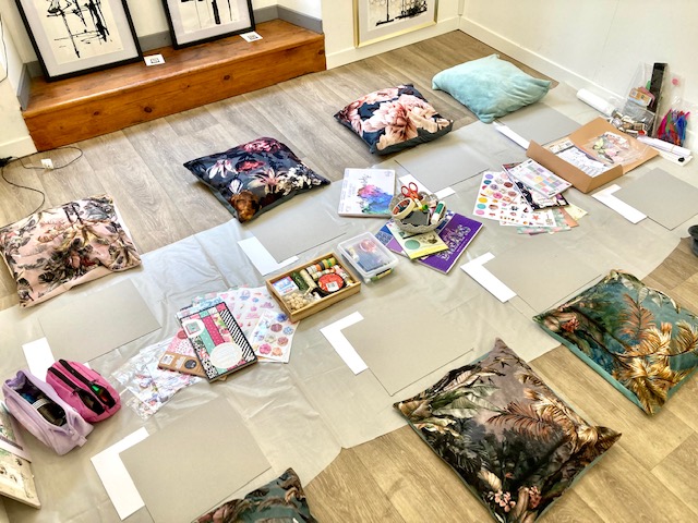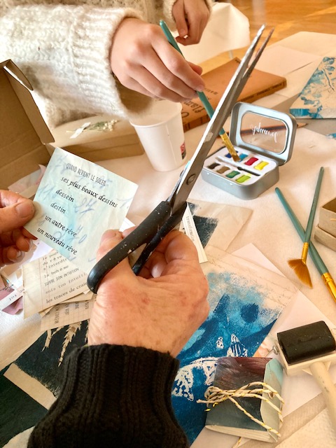 – Ateliers de pratique de carnet créatif : expérimenter le champ des possibles à travers le jeu des mots, des formes et des couleurs.